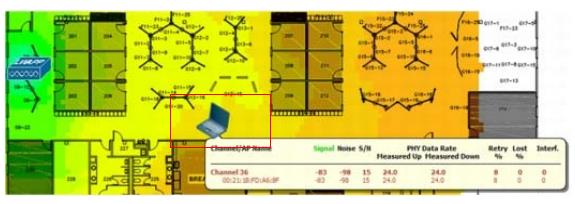 圖1:沒(méi)有采用ClientLink技術(shù)時(shí)的信號(hào)覆蓋熱圖