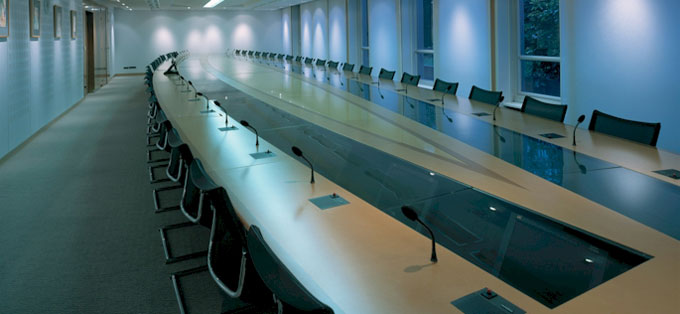 多功能會(huì)議廳操控平臺(tái)系統(tǒng)、多功能會(huì)議廳、系統(tǒng)集成綜述、智能集中控制系統(tǒng)是用來集中控制單個(gè)或多個(gè)會(huì)議場所內(nèi)所有設(shè)備,包括各種子系統(tǒng)及各種設(shè)備電源的開關(guān)、現(xiàn)場燈光的調(diào)節(jié)、屏幕的升降、窗簾的開合,各種多媒體設(shè)備的操作等等。用戶只需在一個(gè)彩色觸摸屏上即可實(shí)現(xiàn)對(duì)所有系統(tǒng)設(shè)備的控制操作。