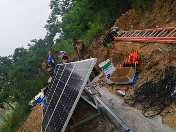 前期的方案確定了十幾個(gè)施工點(diǎn),工程師帶領(lǐng)工人逐個(gè)施工安裝。先打地基,然后組裝安放監(jiān)控立桿、安置監(jiān)控?cái)z像頭、安置太陽(yáng)能供電板等,一步步的施工有條不紊。在整體安裝完成后,還要對(duì)每個(gè)攝像頭進(jìn)行測(cè)試調(diào)試,確定都能正常工作,并且調(diào)整監(jiān)控角度,盡量達(dá)成監(jiān)控?zé)o死角。到此,施工完畢。