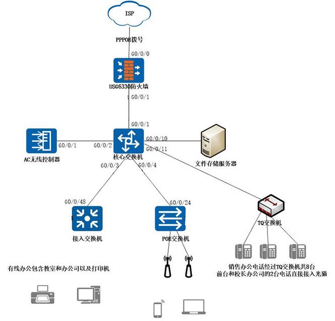 清楚了解原有網(wǎng)絡架構(gòu)后,結(jié)合教學和辦公用網(wǎng)的需求,炫億時代的工程師為其貼身設計一個完美的網(wǎng)絡架構(gòu),既滿足該教育機構(gòu)未來5年發(fā)展,又滿足當下教學設備和辦公用網(wǎng)需求的的WiFi網(wǎng)絡!