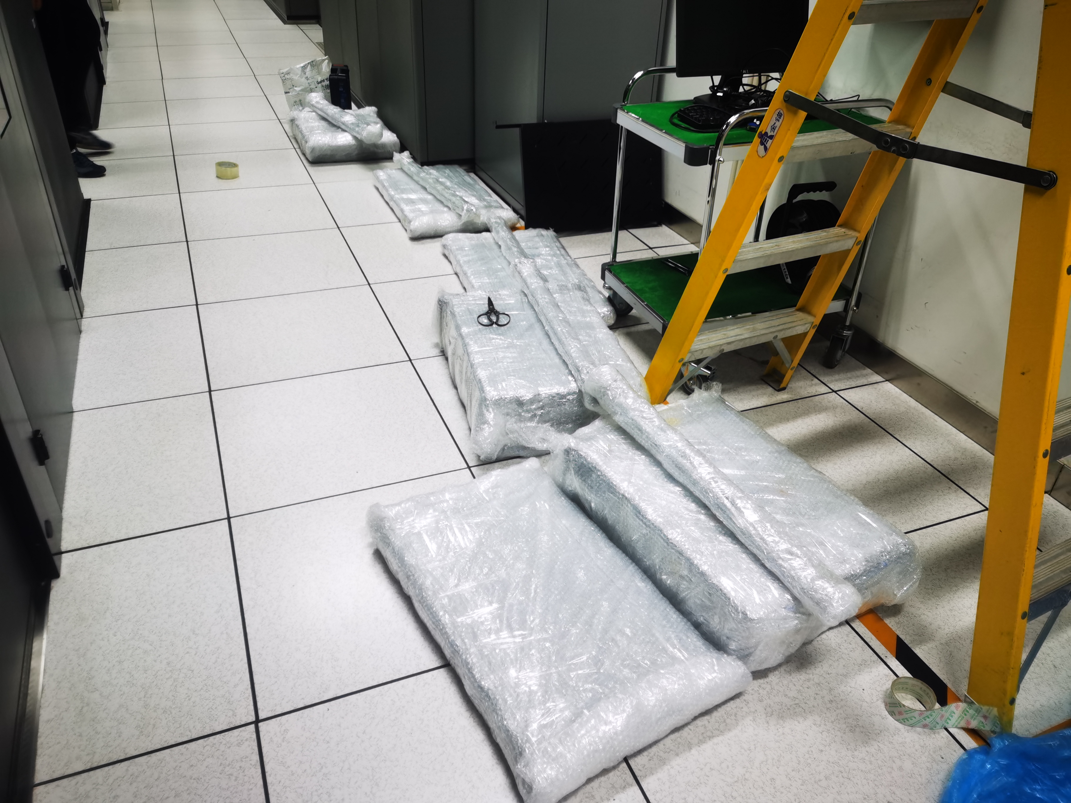 其次,對舊機房設(shè)備進行清點、精細打包,多層氣泡墊保護設(shè)備不被損壞,在保證設(shè)備服務(wù)器數(shù)據(jù)完整性、安全性前提下進行設(shè)備下架遷移。