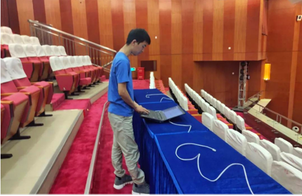 參賽的代表隊及選手在現(xiàn)場400多名觀眾的見證下展開激烈的角逐,現(xiàn)場網(wǎng)絡(luò)覆蓋、保證連接出題控制臺的有線網(wǎng)絡(luò)和覆蓋全場的無線網(wǎng)絡(luò)的穩(wěn)定是炫億時代的首要任務(wù)。此次活動選用的階梯禮堂的總面積達1000余平,采用有線+無線的組網(wǎng)方式,分別服務(wù)于現(xiàn)場基礎(chǔ)設(shè)備、工作人員、參賽人員和觀眾。設(shè)計方案時工程師們做了功能分區(qū),各個業(yè)務(wù)區(qū)均有各自的專屬網(wǎng)段,每個網(wǎng)段做到可管可控,確保整個網(wǎng)絡(luò)穩(wěn)定安全。