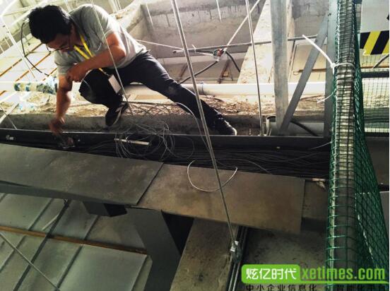 室內(nèi)的線路是從冷凍室的天花板上布置進(jìn)來(lái)的,天花板入口很小,只能一個(gè)人爬進(jìn)去,從照片上工程師兩個(gè)布滿灰塵的膝蓋就可以看出敬業(yè)!
