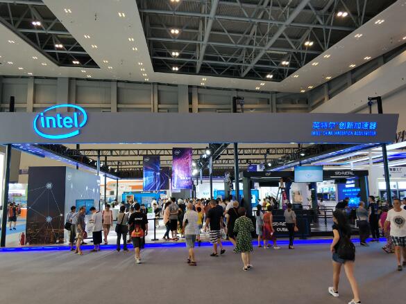 和華為展區(qū)間隔不遠(yuǎn)的就是英特爾展區(qū)了。英特爾以“創(chuàng)新加速”為主題,向廣大游客開(kāi)放了最新的電腦芯片產(chǎn)品和網(wǎng)絡(luò)加速技術(shù)體驗(yàn),吸引了眾多的游客!