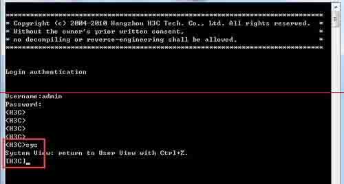 2、系統(tǒng)視圖:在用戶(hù)視圖下輸入“system-view”(或簡(jiǎn)寫(xiě)sys),進(jìn)入系統(tǒng)視圖下,其表示方式為[H3C],在系統(tǒng)視圖下可以進(jìn)一步的查看交換機(jī)的配置信息和調(diào)試信息,還可以進(jìn)入具體的配置視圖下進(jìn)行參數(shù)的配置,如圖所示: