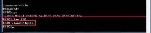 4、VLAN視圖:在系統(tǒng)視圖下輸入"vlan 220" 就可以進(jìn)入VLAN視圖,主要完成對(duì)VLAN的配置,如圖所示: