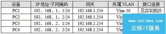 1、添加設(shè)備使用雙絞線按拓撲圖連接網(wǎng)絡(luò)。 2、按實訓(xùn)配置要求配置四臺PC機的IP地址信息。 3、點擊交換機S1進入命令行配置窗口,更改交換機名稱、創(chuàng)建VLAN并把相應(yīng)接口劃入對應(yīng)VLAN。