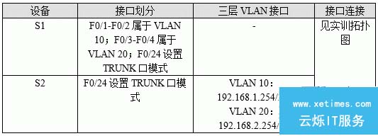 S1(config-if-range)#switchport access vlan 20 //把F0/3到F0/4接口劃入VLAN 20