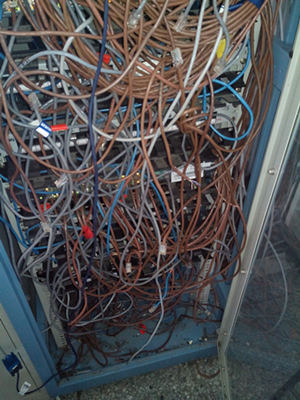 【分析】故障排查:經(jīng)排查發(fā)現(xiàn)設(shè)備間核心路由為家用無線路由(家用無線路由可帶機(jī)器為10臺(tái)左右),設(shè)備間雜亂,路由和交換機(jī)上面全是土,而且散熱不好。