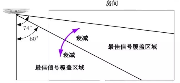 吸頂AP 使用的是定向天線,其信號(hào)發(fā)射方向如圖1-3 所示,實(shí)際覆蓋過程中,需要根據(jù)圖中的角度來確認(rèn)AP 的信號(hào)是否能夠覆蓋到需要的區(qū)域