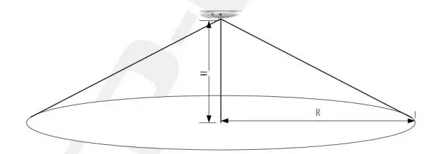 AP 在不同的安裝高度,其對(duì)應(yīng)的覆蓋范圍略有不同,假設(shè)AP 高度為H。其最佳信號(hào)覆蓋半徑為 R=H*tan(74°)=3.48H,如圖1-4 所示。在實(shí)際覆蓋過程中,不同AP 的覆蓋范圍最好能夠有一定重疊,這樣可以保證漫游效果,如圖所示。