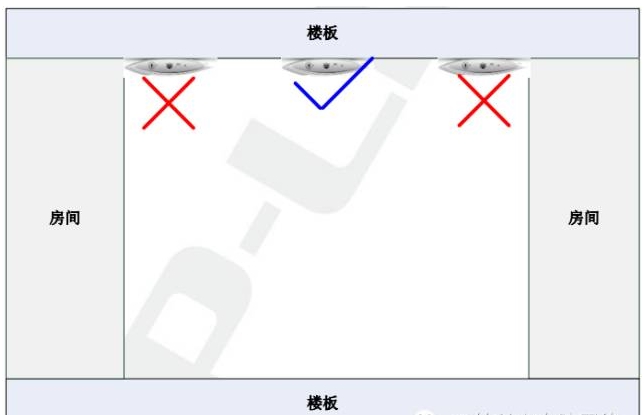 AP 在安裝的時(shí)候,盡量選擇天花上沒有遮擋的區(qū)域,與需要覆蓋的房間的墻體保持一定距離或居中的位置,安裝位置如下圖所示