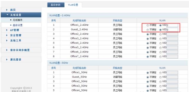 在現(xiàn)有的有線交換機(jī)上增加1 個(gè)或者多個(gè)VLAN,隔離有線網(wǎng)絡(luò)中的廣播包,并在AC上把SSID 綁定到新增的VLAN 上,如圖所示: