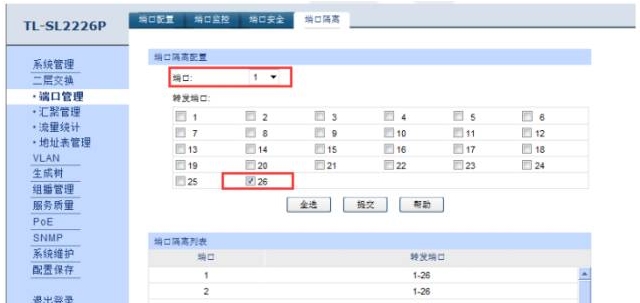 可在連接AP 的交換機(jī)(需要網(wǎng)管交換機(jī))上設(shè)置端口隔離功能,讓無線AP 相互隔離,只能與上聯(lián)口通信。