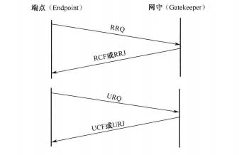 端點(diǎn)等級(jí)必須根據(jù)網(wǎng)守的RAS地址向其發(fā)送RRQ消息,消息包含著端點(diǎn)別名及其信令傳輸層地址。別名分別為E.164地址,E.164地址可由接入碼和電話號(hào)碼組成,該接入碼可以用來標(biāo)識(shí)網(wǎng)關(guān)。