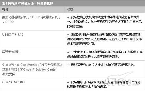 Cisco1841路由器延續(xù)了為中小型企業(yè)和小型企業(yè)分支機(jī)構(gòu)提供多功能性、集成性和強(qiáng)大功能的傳統(tǒng)。它提供了許多改進(jìn)來支持分支機(jī)構(gòu)中多種集成服務(wù)的部署。表4中列出了降低擁有成本和提高易用性的主要特性和優(yōu)勢.