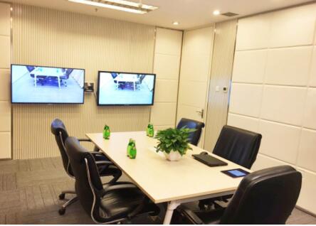 4、視頻會議室的其他三面墻壁、地板、天花板等均應與背景墻的顏色相匹配,忌用黑或鮮艷色彩的飽和色,通常采用淺藍色、淺灰色等。每面墻都不適宜用復雜的圖案或掛復雜的畫幅,以免攝像機移動或變焦時圖像產(chǎn)生模糊現(xiàn)象,同時增加編碼開銷。最好將窗戶密封或者安裝茶色玻璃,也可以掛厚布窗簾以防止陽光直射設備。