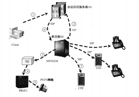 2、會議服務器通過SIP觸發(fā)軟件交換呼叫會議參與者;