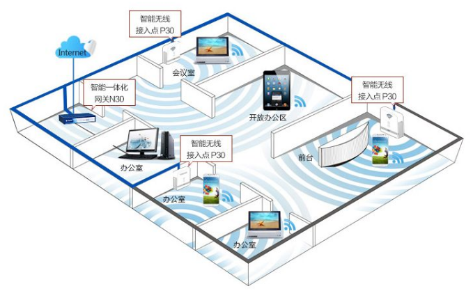 般商用無線覆蓋,是通過企業(yè)路由器+無線AP來做覆蓋的。