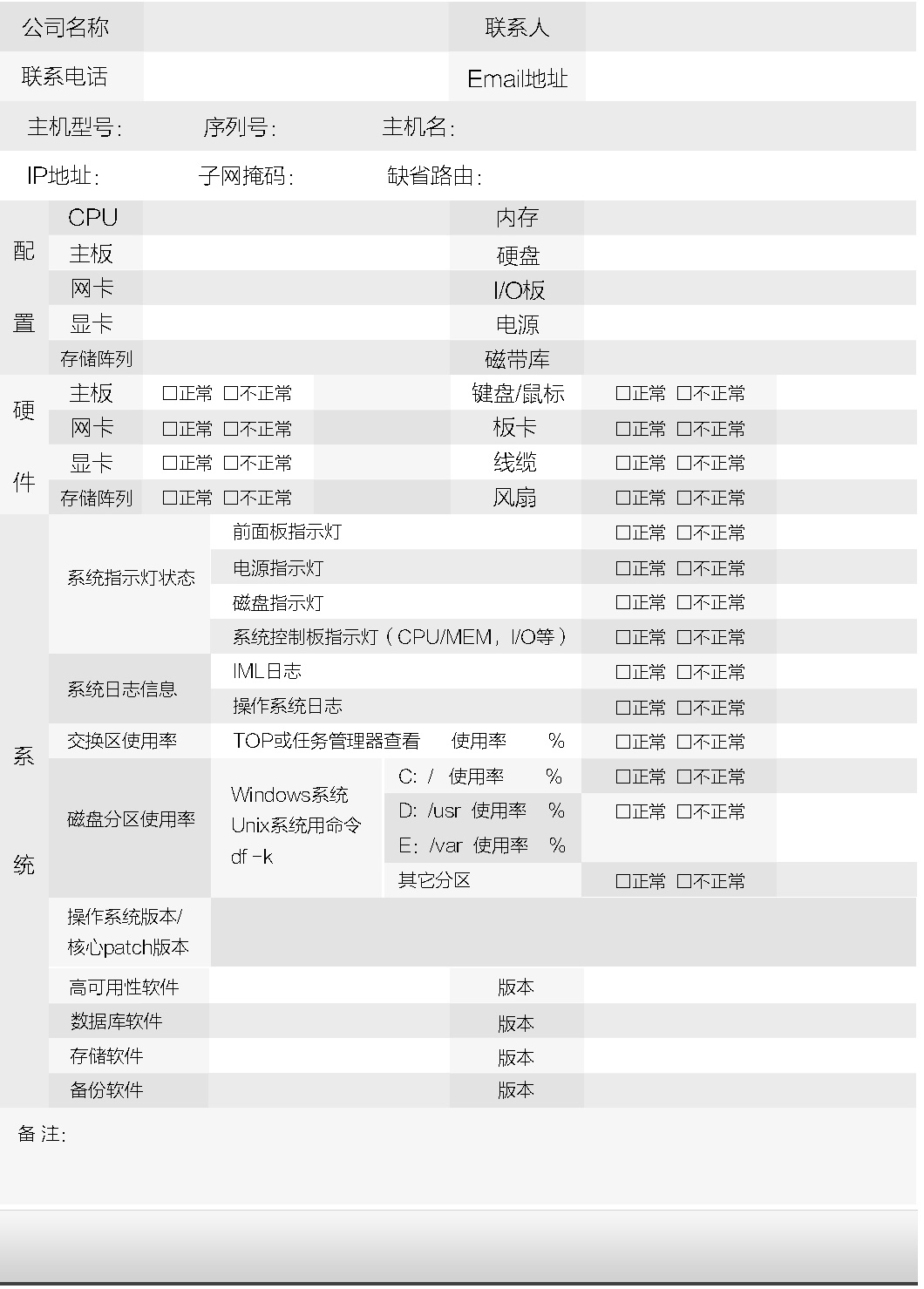 一: 高級工程師每月固定巡檢一次。核心:優(yōu)化整體設(shè)備性能,提高工作效率,消除潛在風險。
