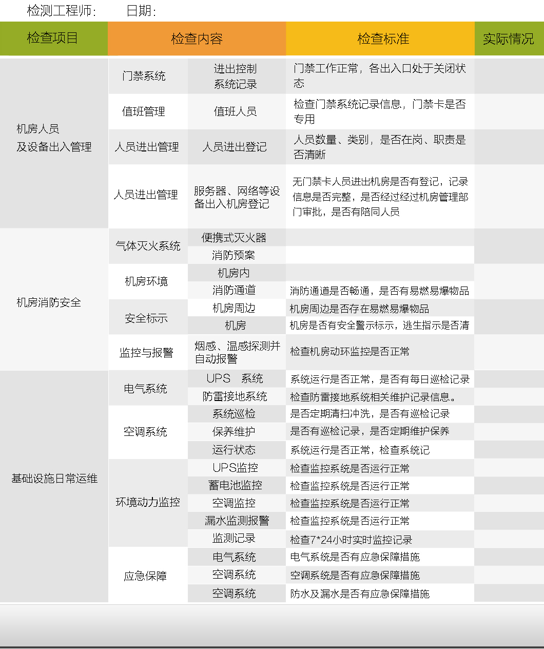 • 幫助客戶建立完善的機房人員及設(shè)備管理機制、消防安全機制、基礎(chǔ)設(shè)備日常維護機制。